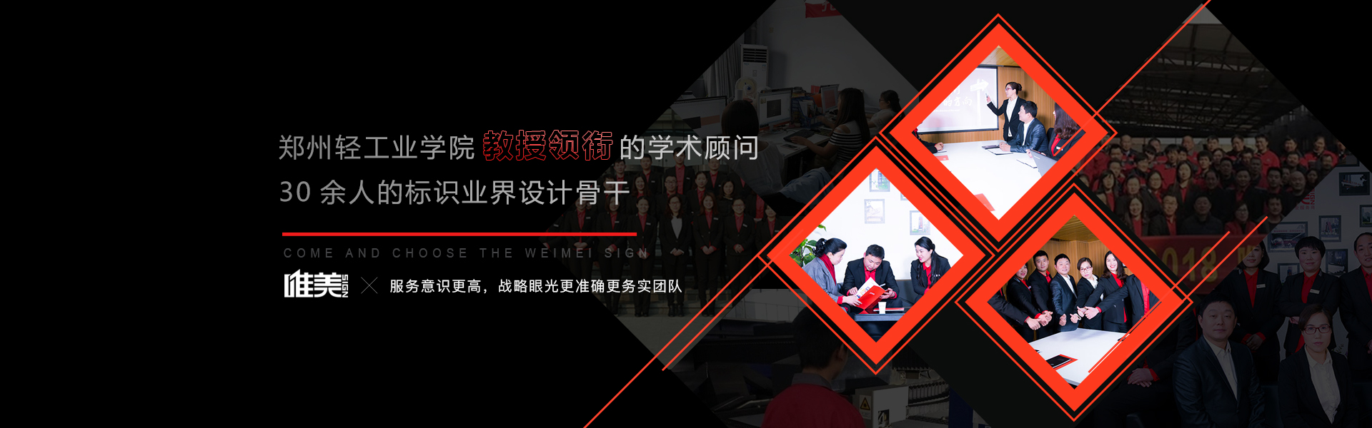 鄭州唯美標識設計制作有限公司是一家專注從事地產住宅、商業廣場、商務辦公、醫院系統、學校文化、工業園區、市政交通、旅游景區、酒店餐飲、銀行金融、城市環境標識標牌系統規劃、設計、制作、...